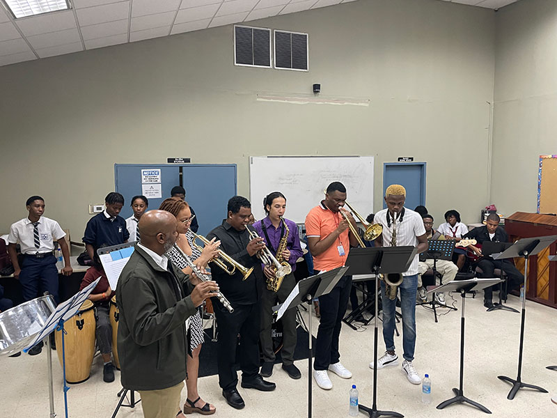 The Academy for the Performing Arts (APA) continued with their school visits sponsored by Ansa McAl this week, with a visit to Bishop Anstey East and Trinity College East by the APA Jazz Combo, under the direction of Assistant Professor Aidan Chamberlain.